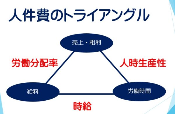 利益計画書を作る中で、最大の要因は「人の用い方」です。 中小企業においては、未だに属人的業務が多く、その働き方で利益を大きく左右することが暫しあります。 特に最近の人件費アップの風潮に逆らえず、業績や利益の改善を伴わないままに、人件費だけを上げてしまう風潮も見られます。この人件費アップを吸収するためには、一人当たりの生産性の向上が避けれれません。 この図に示す3つの要因を正しく作り上げることで、無理のない人件費対策が可能になると思われます。