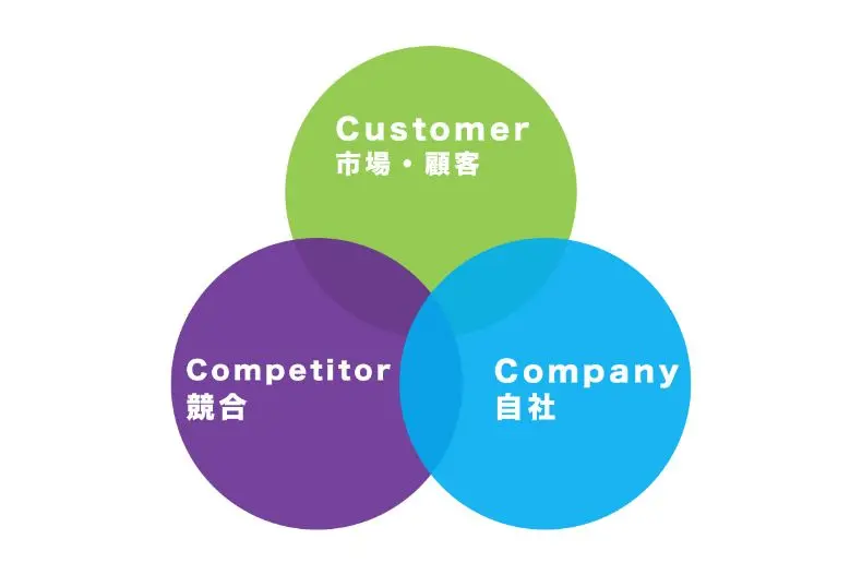 自社のセールスコンセプトを作るには、「3C分析」が有効です。 顧客は、自社と競合他社を比較して、購入を検討します。3C分析をすることで、考えが整理できます。 「3C」とは、1.自社の現状を把握する。2.顧客を知る。3.競合他社を知る。の3つを指します。 SWOT分析で自社の方向性を決める時、この3C分析を併用することをお勧めします。